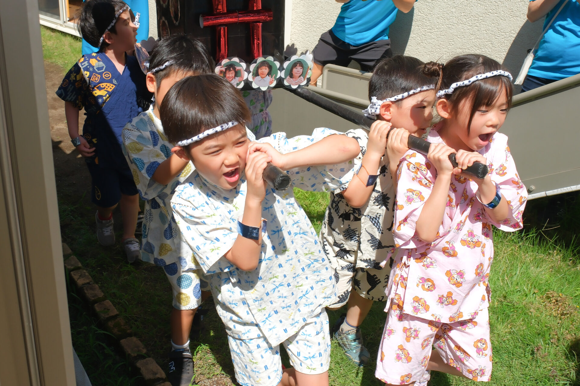 園舎の隣にある畑で1年通してさまざまな野菜を植え、水をやり、収穫し、3、4、5歳児はみんなで協力して1つの料理を作り上げるなどの経験をし、食への関心を持って「楽しく!美味しく!食事ができる」を基本に、園内食育(野菜を育てるなど)を通して命の大切さ、食べ物の大切さ、ありがたさに気付くこと、また植物の成長や収穫を楽しむことを食育の目的としています。